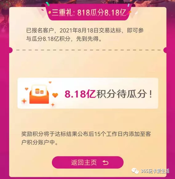 投资和投机的差别是什么? 提示:请配合背景音乐阅读本文 这一段如果你不感兴趣可以跳到第二段直接读信用卡相关资讯 投资和投机的差别是什么? 这个问题困扰了我很久 直到一个修行的人给了我答案 算是我比较认同的答案 他原话是从“什么是道”开始讲起的 今天我为了写这篇文字特地去重新听了一遍 听完还是觉得挺爽,有点颅内高潮 他引用了儒家、道家、法家、佛家、心学等关于“道”的描述 最后他用“道”相关的知识去阐述了他心目中关于投资和投机的差别 投资就是投公司的内在价值,是投资未来现金流的折现,投资应该有觉悟与公司一起成长,享受公司内在价值增加带来的收益,投资不应该被短期价格波动所影响 投机就是做交易,是在市场中通过直觉寻找价格变动的机会,并在买卖中获得收益,投机抑制自己的情绪的同时感知市场的情绪寻找交易机会 这么说还是有点不太好懂 来打个比喻吧 投资就是养鸡,鸡会生蛋,蛋会孵出小鸡,然后小鸡接着生蛋,于是你的养鸡规模越来越大,生出来的蛋也越来越多,你起初投资的100元,变成了10000元 投机就是打乒乓球,球来了就打回去,得分了就赢钱,丢分了就输钱,要把球打中主要靠球感(也就是直觉) 大家都知道365目前引入了港股打新的话题,那么港股打新是什么?是投资还是投机?都不是,港股打新更像是砸金蛋。 你到底是个投资者还是投机者呢? 欢迎在留言区讨论 如果觉得本文对你有用,请给个四连支持 点赞-收藏-分享-在看 接下来是今天的信用卡活动类信息 光大10万积分,230返现! 今天要分享的活动来自光大,废话不多说,直接看活动吧: 登录阳光惠生活APP → 精选 → 乐享惠生活,即可报名。活动名额数量有限,而且按照报名顺序先到先得,所以,想要参加的,速度先把名报了!共有三重活动,可以叠加。 - 1 - 周周刷周周送 活动时间:2021年8月9日0:00-2021年10月3日24:00,共计8周 活动期间,每周交易三天且每周累计消费满818元,即有机会获得8180积分。根据报名客户达标时间先后进行排序,每周限前2万名客户,活动期间共计16万名客户。 如果每周都能拿到8180积分,8周一共可以拿到65440积分。别急,后面还有返现+积分。 - 2 - 周周刷周周返 这个就是返现活动了,可以叠加周周送积分活动。客户每周交易额达标即可获得相应权益返现,每周获奖名额有限(见下表),根据报名客户达标时间先后进行排序,先到先得。具体达标门槛及返现权益如下: 建议直接在周一(第一期是8月9日零时开始)直接刷3820元,就搞定了。由于是根据客户完成交易的时间来排序,所以,还是要拼运气的,毕竟每周的返现数额并不多。同时,也完成周周刷周周送要求的818元任务。 - 3 - 818瓜分8.18亿积分 在8月18日这天,光大卡交易满818元的前2万名客户,即可参与平均瓜分8.18亿积分,每位客户上限可瓜分10万奖励积分。 8.18亿积分,供2万客户分,每位客户也就只能分到40900积分,离10万积分的上限还差得远,所以实测应该是没有10万分的! 虽说光大的积分价值非常低,但是光大白金卡(如阳光商旅白、孝心标准白、孝心卓越白)的客户还是需要20万、30万积分抵扣次年年费!并且现在光大也加入了精准打击第三方支付工具的行列,很多线下刷卡都没有积分了。 光大积分用法【不能换里程,光大积分还能怎么花?】 所以,光大这个活动,建议手持白金卡的小伙伴参加! 近期最值得参加的信用卡活动 27月26日-10月27日,邮储银行储蓄卡活动,5折话费,白拿50元!7月19日-9月26日,中信银行信用卡活动,中信送10台车+2700万份奖励! 7月1日-9月30日,农业银行信用卡活动,农行2重返现,可叠加! 即日-2022年5月31日,民生银行信用卡活动,民生车卡返现延期!每月500元持续1年即日-12月31日,多行信用卡借记卡活动,全国多行卡种多网点,任意加油满200均可减20! 即日-9月30日,工商银行信用卡活动,工行领15元微信立减金!无需消费可直接领6月15日-9月30日,招商银行信用卡活动,招行5000大羊毛!活动攻略+避坑指南6月1日-8月31日,平安银行信用卡活动,平安最高10倍积分,可拿百万积分!更多精彩推荐 提额技巧 | 信用卡申请 | 信用卡办理 申卡顺序 | 信用卡逾期 | 信用卡额度 航空里程 |信用卡分期 |信用卡账单 | 卡圈干货 刷卡用卡 |养卡玩卡 | 用卡权益 |信用征信 薅羊毛 |信用卡还款 | 信用卡借贷 |信用卡负债 信用卡优惠|工商银行 | 中信银行 | 中信里程攻略 农业银行 | K宝大法 | 南航白金 | 悠然白金 | 易卡 一篇玩转招行 | e招贷 | 掌上生活 | 浦发银行 浦发AE白 | 世界卡 | 平安银行 | 旅游白 | 标准白 车主卡 | 沃尔玛 | 魔力卡 | 女人卡 | 京东卡 广发DIY卡 | 兴业提额 | 工商银行提额 | 亚万联名 免年费白金卡 | 中信信用贷款 | 6招破招行黑屋 你知道怎么申卡玩卡吗? 你知道怎样用信用卡融资吗? 快来加入我们的玩卡群吧!!! 和各个银行的高额度资深卡友面对面交流他们的玩卡秘籍,进群扫码添加365客服企业微信或点击文末“加入群聊”按钮,验证语“卡神”。 福利多多 365玩卡--最专业的金融知识社群! 群内最热主题 1、信用卡融资技术 2、大额卡秒批实操 3、提额的八大核心 4、银行风控潜规则 5、羊毛积分如何薅 6、套卡组合赚里程 了解更多信用卡权益和信用卡融资信息 请点击按钮进群交流↓↓↓ 365玩卡交流群 365玩卡——最专业的 金融知识社群! 加入群聊 就来点个在看吧! 了解更多知识,请关注卡神吧,为您提供