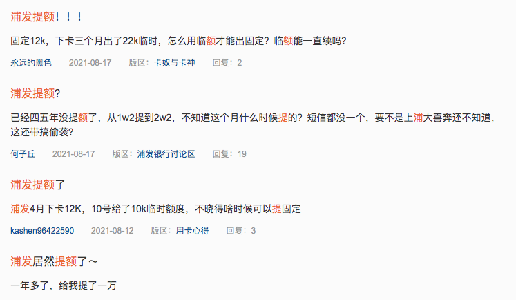 1.点击标题下的蓝字“我爱卡”2.进入“我爱卡”公众号主页3.点击右上角的三个点标志4.将“我爱卡”设为星标感谢您的支持! “已经四五年没提额了,从1.2w提到2.2w,不知道这个月什么时候提的?短信都没一个,要不是上浦大喜奔还不知道,这还带搞偷袭?” 以上是某位卡友在前两天在社区里的发言,算是对浦发默默提额的吐槽,结果下面很多卡友纷纷炸开了锅,原来不止这一位卡友遇到了这种情况。 不知道在座的各位小伙伴有遇到同样的情况吗?那今天我们就来一期纯干货分享,分享一下近期以来浦发用户们的几个提额典型。以此为大家做个事例参考一下。 下面还有一位老哥来了一段非常强烈的反馈,称浦发提额是真的NB,卡友表示控制好负债三个月一提,提额幅度大,下卡八千块,是所有卡里(9行)下卡额度倒数第二,竟然是第一个逼近10万的卡。并且还为我们附上了很实用的提额攻略。 每个月还款后,前三天真实小额网付,第四天刷一笔大额,之后都是间隔一天刷大额,中间网付,因为实在懒得刷小额,搞得心累,每期账单控制在总额50%内就ok,老哥期待下次能破个10W。 看到这里你肯定会发出一声质疑,浦发提额难道真的这么容易?确实,浦发提额是真的挺猛的。有卡友下卡仅6000,一年的时间就提到了 不说别的,只要摸准了浦发信用卡的提额规律,掌握一定经验技巧,想让浦发提额还是没那么复杂的。 这边有卡友在4月18号下了一张浦发健康卡,额度仅3000,在第四期账单还款日的时候迎来了浦发的首提,翻倍6000额度!在此期间正常消费,套了只有两次。事实证明只要卡用的好,都能提额! 每月留30%的额度不去使用,该卡友是每月空卡,最高记录负额度300多!基本都是真实消费,都是用云闪付和浦大喜奔APP扫银行的二维码、支付宝京东商城线上支付、加油站用实体卡。 整体建议就是消费场景要多,其中可包含商店、商场、市场、加油站、文具、服装、五金店、汽修、违章罚款、医院等等。能用浦发信用卡的地方全部都要用起来!额度没有充钱刷! 但是在这里,使用浦发银行信用卡的小伙伴们还是需要注意一下,实际上浦发银行信用卡的额度肯定不止10w封顶,还可以继续上升。 但对于浦发银行信用卡来说,100K是最好用的额度,再高只是占用自己的总授信,资金无法合理利用,单卡额度过高,其他行提额就会比较困难。所以,一般不建议单卡额度过高。 还有申请浦发银行信用卡的一些个人资质,小卡在这边小作梳理。 第一、在申请办理浦发信用卡的时候,需要申办人年满18周岁。 第二、信用卡审核在客户信用这一方面是非常看重的。想要办理浦发的信用卡,一定要维护自己的信用记录。 第三、想要办理浦发信用卡,需要有稳定的收入来源。如果在某个单位工作,那么就需要各位提供单位的工作证明以及银行的工资入账明细。 第四、需要提供真实有效的联系人。 好啦,想要办理浦发银行信用卡的小伙伴可以抓紧办理起来了,办理过的也可以抓紧研究一下卡片提额内容了! END MORE | 推荐阅读 不知道申请哪张信用卡,在我爱卡公众号回复【推荐】试试。 了解近期刷卡优惠活动,在我爱卡公众号回复【羊毛】速览。 加入我爱卡粉丝讨论群,在我爱卡公众号回复【进群】即可。 认可我爱卡品牌及内容,在我爱卡公众号回复【合作】聊聊。 MORE | 热门推荐 点击下方图片即可阅读 MORE | 往期精彩回顾(点击文字即可阅读) 热点丨多赚几个月工资!这个路子,京东红包无限领~ 热点丨烦死了!光大孝心白再回归,到底闹哪出? 热点丨试水下卡15w?建行大山白越来越强了啊! 羊毛丨这888元锦鲤 和你半毛钱关系没有!只是…… 羊毛丨20倍广发积分!超值打车卡,别用原价滴滴啦! 羊毛丨爱奇艺京东双年卡优惠最后一天,抓紧办起! 干货丨农行这一神卡 你真的会申请么? 干货丨玩卡高手的速成之路! 干货丨解决催收困扰,与银行协商的沟通技巧 荐卡丨收藏!美国运通信用卡,看这篇就够了! 荐卡丨厉害!性价比最高的Safari信用卡来了! 荐卡丨2021哪些信用卡值得办理?好卡汇总篇 关注丨币圈惨遭崩盘 万亿美金蒸发!你还好么? 关注丨警惕虚拟货币交易炒作风险!三大协会齐发声 关注丨紧急提醒自家老年人!谨防被骗! 让更多人知道你在看 点“阅读原文”立即申请信用卡 了解更多知识,请关注卡神吧,为您提供信用卡、贷款、理财、保险等资讯及交流! 特别声明1、该文观点仅代表作者本人,卡神吧系信息发布平台,卡神吧仅提供信息存储空间服务。 2、您若发现有侵略您著作权行为,请及时告知,我们工作人员将在第一时间删除侵权作品、停止继续传播。 3、如果你喜欢这篇文章,请帮助我们转发它分享给你身边的好友。 |