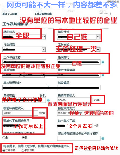 交通银行下卡快,额度高。 全程网上申请,安全便捷。 特别提醒:请拿到卡片后3日内激活并在超市刷卡消费一次(任意金额,消费1元钱都可以),会有100元刷卡金赠送! 请务必填写白金推荐码:15235574991 请务必填写白金推荐码:15235574991 想要顺利下卡,请务必仔细阅读完本日志再填写申请 教程-----教程-----教程 ================== 注意事项: 有三险五险或大专以上学历的直接申请 大专以下或三无的学历填写大专,然后严格按要求申请! 如果有其他银行信用卡并且使用半年以上信用记录良好 申请2-10分钟就可以通过审核 100%通过审核下卡 并且马上知道额度 信用卡必须由本人申请 严禁代替朋友申请信用卡 第一步 百度“交通银行信用卡”进入官网 或者自己复制下面链接 交通银行官方申请地址 https://creditcardapp.bankcomm.com/applynew/front/apply/new/index.html?recomNumber=15235574991&recomType=01 (点击阅读原文可直接跳转至该链接) 第4步: 选择喜欢的卡片,提醒:超过30周岁请勿申请青年卡;尽量选择 标准 银联普卡 千万千万不要金卡 注意了 不要金卡!!! 注意身份证有效期,楼主第一次申请就因为填错,秒拒 里面的住宅状况,自己没房子就写租房两年以上,结了婚就写自己有房没按揭,当然,有贷款要据实写。 车牌号码没有的随便找一个填写上。 (注:单位座机,这个一定要填写,现在网上填报后很快银行会打到单位座机找你的。家庭电话,实在没有的,填一个当地的没停机的号码,自己记牢。百分之九十九的概率都不会打这个电话。 信贷评分参考表 单位名称缩减到8个字以内,否则无法正常提交。请不要填写销售部门,通过率不是很好,可以选择生产部,行政部,财务部等等慎记 还有年薪不要写太少六七万就行,工作时间两年左右! 建议选择“使用密码确认交易”,安全第一; 如有它行信用卡建议填写; 有交行借记卡的就是交通银行客户,后面的自动还款选上自动还款 交行的增值服务, 自选服务交易确认选择(使用密码确认交易)下一页的自主选择服务12元+9元选上,利于下卡,下卡后取消就行 第7步 递交完成申请。(有时候会出现提交申请失败的情况,大家可以先退出,过一两天再次提交即可成功) 最后的确认提交前把上面的资料复制出来保存,提交之后,部分会直接短信告知额度,这就意味着已经 通过审核,等着银行把卡免费给你发快递就行了。也有部分朋友会在15分钟左右接到电话,问你关于自己 填写的这些信息。 了解更多知识,请关注卡神吧,为您提供信用卡、贷款、理财、保险等资讯及交流! 特别声明1、该文观点仅代表作者本人,卡神吧系信息发布平台,卡神吧仅提供信息存储空间服务。 2、您若发现有侵略您著作权行为,请及时告知,我们工作人员将在第一时间删除侵权作品、停止继续传播。 3、如果你喜欢这篇文章,请帮助我们转发它分享给你身边的好友。 |