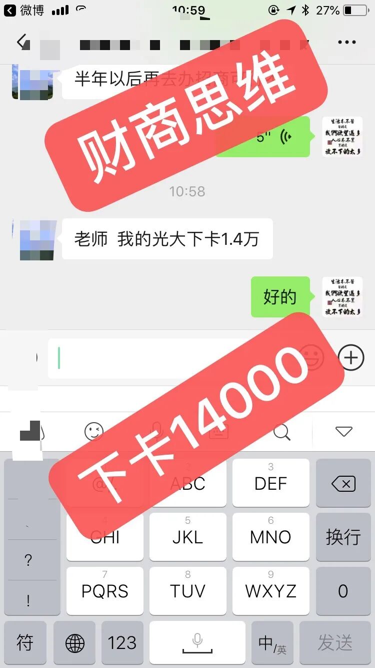 好了,今天关光大放水阿楽就给大家分享这么多,如果大家还想学习更多关于办卡、提额、贷款、融资、征信优化、房产投资、金融中介等知识,可以来我们晚上直播间听课学习,在课程里面老师都会详细讲解到!也可以添加阿楽微信详细了解:17880274132~ 了解更多知识,请关注卡神吧,为您提供信用卡、贷款、理财、保险等资讯及交流! 特别声明1、该文观点仅代表作者本人,卡神吧系信息发布平台,卡神吧仅提供信息存储空间服务。 2、您若发现有侵略您著作权行为,请及时告知,我们工作人员将在第一时间删除侵权作品、停止继续传播。 3、如果你喜欢这篇文章,请帮助我们转发它分享给你身边的好友。 |
