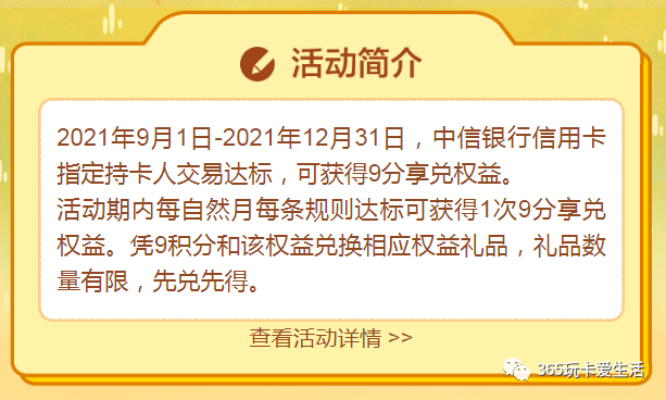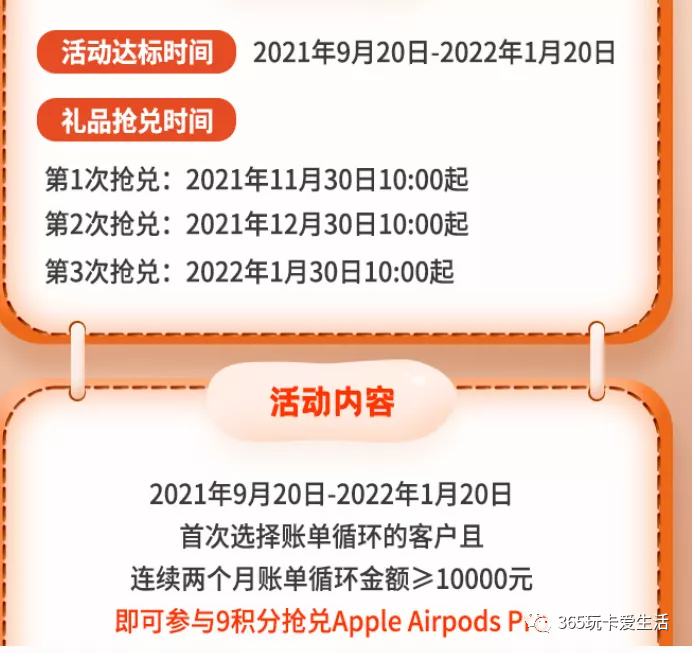 365玩卡交流群 365玩卡——最专业的 金融知识社群! 加入群聊 近期银行活动,有广发超级发发发回归,农行10倍积分,运通卡免费住千元酒店。 另一个消息来自中信,中信9积分的规则大家都已经很熟悉了。 那么它现在又多了这么一项重磅福利你知道吗?9积分抢兑Apple AirPods Pro。 参与详情如下: 2021年9月20日至2022年1月20日,符合条件的活动客户在活动期间连续两个月(自然月)账单循环金额≥10000元且保持至账单日后T+8日,即可9积分抢兑 Apple AirPods Pro. 注:账单循环金额指截至最近一期账单日,客户上期账单中仍未偿还的部分。例如,客户账单日是20日,9月20日账单为1万元,10月5日还款3000元,至10月20日未有其他还款,则截至10月20日账单日,客户当期的账单循环金额就是9月账单未偿还的7000元。 参与名额有限: 做信用卡账单循环,不得不注意的一点就是利息。循环利息是指:上期账单的每笔消费金额为计息本金,自该笔账款记账日起至该笔账款还清日止为计息天数,日息万分之五为计息利率。是按日计息的。 当偿还的金额等于或高于当期帐单的最低还款额,但低于本期应还金额时,剩余的延后还款的金额就是循环信用余额。如果选择使用了循环信用,那么在当期就不能享受免息还款期的优惠。 再算算本期活动最低是69天,利息最低就是69*5=345元。(按月账单1万,利息每天5元算) 有精通的可以来帮忙看看,没算错吧?总之如果要参加的话,肯定要考虑好成本! 近期最值得参加的信用卡活动 即日起至12月31日,建设银行信用卡活动,送钱!建行VISA卡活动最全汇总,每周每月多次返现7月26日-10月27日,邮储银行储蓄卡活动,5折话费,白拿50元!7月26日-10月27日,邮储银行储蓄卡活动,邮储银行借记卡活动合集,共几百元羊毛!9月19日-11月18日,邮储银行信用卡活动,邮储5折活动汇总,包括各支付渠道及大量商户 9月15日 - 10月22日,交通银行信用卡活动,交行年度大戏:每人几百羊毛,多商户5折不限量 9月15日 - 10月14日,中信银行信用卡活动,中信积分防冻结用法,价值可翻5倍! 9月9日-12月8日,中信银行信用卡活动,中信双倍里程再次加码,额外赠送1000里程! 即日起-10月3日,光大银行信用卡活动,光大百元羊腿!还送上万积分 即日-2022年5月31日,民生银行信用卡活动,民生车卡返现延期!每月500元持续1年即日-12月31日,多行信用卡借记卡活动,全国多行卡种多网点,任意加油满200均可减20! 长期有效,多行信用卡活动,多行餐饮半价!最全汇总9月15日-10月31日,兴业银行信用卡活动,兴业5倍积分,叠加可达7倍,还有1积分星巴克6月1日-8月31日,平安银行信用卡活动,平安最高10倍积分,可拿百万积分!更多精彩推荐 提额技巧 | 信用卡申请 | 信用卡办理 申卡顺序 | 信用卡逾期 | 信用卡额度 航空里程 |信用卡分期 |信用卡账单 | 卡圈干货 刷卡用卡 |养卡玩卡 | 用卡权益 |信用征信 薅羊毛 |信用卡还款 | 信用卡借贷 |信用卡负债 信用卡优惠|工商银行 | 中信银行 | 中信里程攻略 农业银行 | K宝大法 | 南航白金 | 悠然白金 | 易卡 一篇玩转招行 | e招贷 | 掌上生活 | 浦发银行 浦发AE白 | 世界卡 | 平安银行 | 旅游白 | 标准白 车主卡 | 沃尔玛 | 魔力卡 | 女人卡 | 京东卡 广发DIY卡 | 兴业提额 | 工商银行提额 | 亚万联名 免年费白金卡 | 中信信用贷款 | 6招破招行黑屋 你知道怎么申卡玩卡吗? 你知道怎样用信用卡融资吗? 快来加入我们的玩卡群吧!!! 和各个银行的高额度资深卡友面对面交流他们的玩卡秘籍,进群扫码添加365客服企业微信或点击文末“加入群聊”按钮,验证语“卡神”。 福利多多 365玩卡--最专业的金融知识社群! 群内最热主题 1、信用卡融资技术 2、大额卡秒批实操 3、提额的八大核心 4、银行风控潜规则 5、羊毛积分如何薅 6、套卡组合赚里程 了解更多信用卡权益和信用卡融资信息 请点击按钮进群交流↓↓↓ 365玩卡交流群 365玩卡——最专业的 金融知识社群! 加入群聊 就来点个在看吧! 了解更多知识,请关注卡神吧,为您提供信用卡、贷款、理财、保险等资讯及交流! 特别声明1、该文观点仅代表作者本人,卡神吧系信息发布平台,卡神吧仅提供信息存储空间服务。 2、您若发现有侵略您著作权行为,请及时告知,我们工作人员将在第一时间删除侵权作品、停止继续传播。 3、如果你喜欢这篇文章,请帮助我们转发它分享给你身边的好友。 |