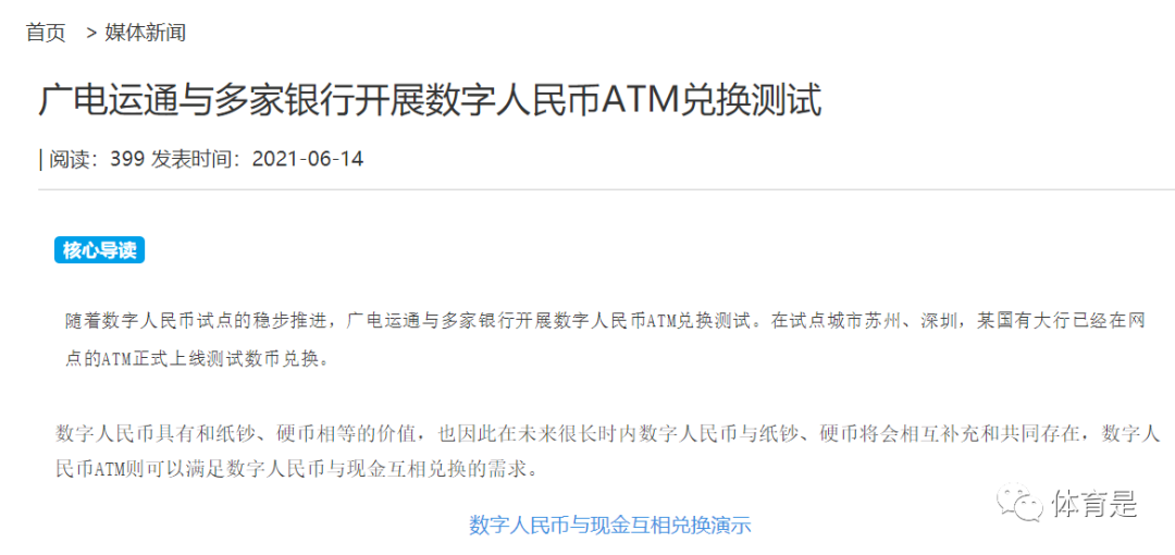 据了解,在2019年底,我国最大的ATM机供应商广电运通表示,数字人民币已经在深圳、苏州、雄安新区等地区开始推行数字人民币红包活动; 2020年10月,增加了上海、海南、长沙、西安、青岛、大连6个试点测试地区。 今年数字人民币参与了京东618促销活动;B站、美团、滴滴、顺丰、途牛、携程、支付宝均接入数字人民币; 2021年6月17日,工商银行、农业银行等银行部分网点 ATM 机启用了数字人民币存取功能; 工商银行是北京第一家全面上线数字人民币的银行,在北京地区已有3000多台存取款一体机也都开通了相关功能; 数字人民币取现流程1、ATM机上点击--数字人民币; 2、输入手机号--填写短信验证码; 3、点击服务项目--兑回现金; 4、输入金额及支付密码,即可从钞箱中取出钞票 数字人民币存现流程1、ATM机上点击--数字人民币; 2、输入手机号--填写短信验证码; 3、点击服务项目--现金兑换; 4、将现金放入钞箱,输入金额及支付密码即可。