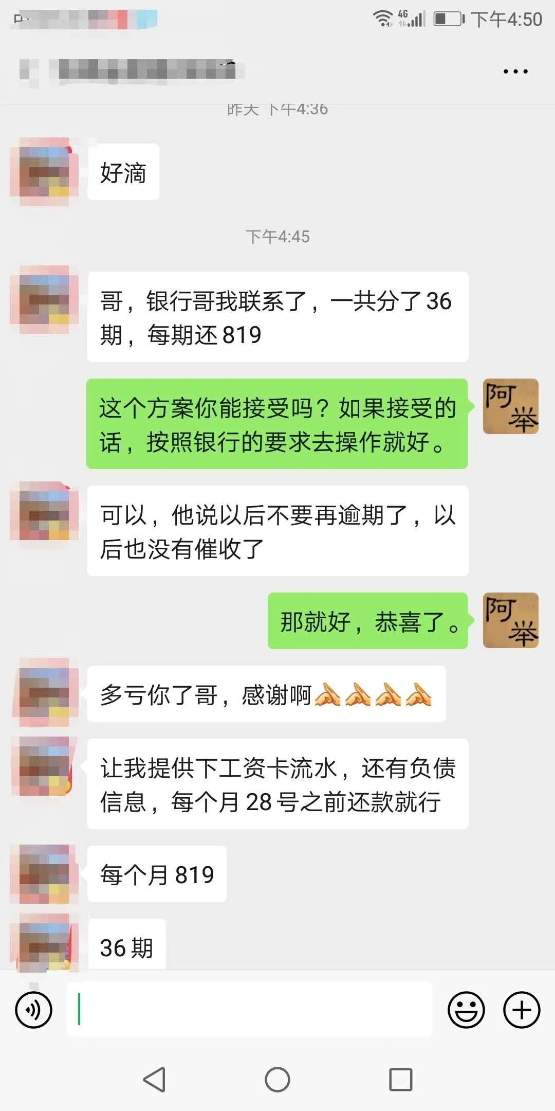 问题1 网友问: 如果早遇见老师就好了 下个月才预期 结果网du心态崩了一个月就输了60多万 ,我现在有信用卡还有网贷,我都不知道该怎么办了,你能给我说一下我逾期之后该怎么办吗?我现在有稳定的收入每个月也可以还些钱给银行,我看说能跟银行协商个性化分期还款,我到时候可以跟银行申请吗? 阿举答: 逾期之后肯定就会有催收了那么你需要做的就是,像银行这种个人信用合同贷,你每次接听电话都请求分期还款,同不同意都申请,并且每月还一点进去,一般在逾期足90天就会很容易跟银行协商分期还款了,当然也可以不用逾期那么长时间,但是短时间银行不太容易给出好的协商方案。 其它的网贷基本都要合同期快结束才会协商重新分期的! 让电话畅通偶接客服电话就可以! 自已就用一台二手机+朋友名下的新电话号码,来工作之用! 记住:不失联,有还款意愿及行为,只承认借款都是与合同用途一致,都用作个人消费并没有其它非法用途!就可以了 每个不同的银行对于不同逾期阶段给予的政策都是不同的。如果需要解答,首先描述好自己欠多少?欠的是哪个行,逾期多久。 但是那些问我怎么样不需要还的,呆账是否需要还的。被代偿是否需要还的免开尊口。 我解答的意义在于帮助那些陷入困境的人, 我始终站在欠债还钱天经地义的立场。 问题2 网友问: 我广发信用卡现在逾期有3300多,己经收到了催收发给我的律师函,还说让我去派出所登记,怎么办?一定要让我在下午五点之前把钱还上! 阿举答: 信用卡逾期后,我们会收到各种催收的电话和短信骚扰,有3句话大家千万不要相信! 1.今天几点之前必须把钱还上,否则我们将走下一步程序,你需要承担什么什么样的责任,这是催收在试探你到底懂不懂法 2.几点之前必须把钱还上,否则会报机关或者来家里或者公司走访甚至拍卖车和房子,这是他们在试探你到底害怕什么,从而抓住你的弱点逼你就范 3.我们理解你的困境,你先还一部分钱,后面的给你申请减免或者延期还款,减轻你现在的压力,这是无事献殷勤,为了拿你的提成而已,其实如果你真的觉得被催收折磨的受不了,无心工作那么可以试着跟银行协商个性化分期还款这样协商成功后催收就停了 每一个来咨询我的朋友我都不太建议跟催收聊的过多,每个月接一两次电话然后以工作不能接电话为由直接挂掉就好了,但是好多朋友特别爱接催收的电话,接了后被催收吓到然后又来问我真的还是假的,你说你是不是闲的! 催收电话没有好事就是让你还款,你接了除了让你压力大产生恐慌没有一点用处 问题3 网友问: 面对催收我该怎么办?现在天天打电话我真的暂时还不了,但是不接电话的话他们接着就打我父母的电话了真的是烦透了? 阿举答: 一般逾期的前三个月内是银行的内催,这个时期,应该好好把握时间和银行好好沟通,将自己的困难和负债问题和银行合情合理的去沟通。虽然会有一定难度,但是努力协商不是一件坏事,也是最好的处理办法。 然后是和欠款人的态度有关,逾期的情况下不要跟银行硬碰硬,用一些强硬的态度说什么我就是不还钱之类的话语,恶意激化矛盾,导致双方之间不能有正常的对话。 既然沟通不了的情况下,只会提前对欠款人进行法律诉讼来解决。 那么持卡人信用卡无力还款逾期后,该如何做才能降低被起诉呢? 1、不要失联,银行催收打来的电话尽量接,逃避是解决不了问题的。2、每个月或多或少还点钱到卡里,可以证明自己虽然没有还款能力,但还是在尽力还款。 3、主动和银行协商,应该主动打电话给银行,告知银行自己最近的还款能力出现了问题,这样可以表明自己的态度以及还款意愿,同时还可以争取让银行减免部分利息,或者是和银行达成分期还款协议,达成分期协议后自然也就不会有被起诉的风险了。 ? 最后打个广告,逾期一次性偿还不了跟银行协商个性化分期还款是最好的解决方法,如果自己协商不了,可以找我们协助协商,专业事交给专业的人处理! 在你犹豫不决的时候其他人选择了债务重组跟银行协商个性化分期还款,在你还在纠结的时候选择的人己经按照 协商的方案还款,而你又多了几期利息和违约金,仍然还是面对每天催收的骚扰和恐吓,同时也多了银行对你的起诉风险。在能协商的时候就赶快协商吧!千万别拖到被起诉才着急想解决的方法,这个时候就完全被动了! 很多人打银行电话去申请分期还款,但是银行前期基本上都会说没有这个政策,这基本上是业内默认的行规!如果每个人打过去电话银行都同意个性化分期还款,那世界就和平了,银行相关催收就没有了!我们要做的是找对方法和渠道让第三方介入来协商与相对应银行的协商分期,然后坐等银行主动打电话给我们来协商,而不是愣头青一样直接找银行协商,想协商个性化分期还款的可以关注我们私聊,给你提供相关协商方法让银行主动来找你协商分期! 总之如果在协商的道路上你们有不懂的话可以咨询我们:专业事交给专业的人来办! 由于本人在互联网金融干了有七八年,从去年初就开始研究逾期后的停息挂账政策为近两万负债人提供了相关解答,有着丰富的相关协商经验,所以负债人遇到的大部分问题,基本上都能解答给出相关经验。 如有问题可以加我们咨询就好! 了解更多知识,请关注卡神吧,为您提供信用卡、贷款、理财、保险等资讯及交流! 特别声明1、该文观点仅代表作