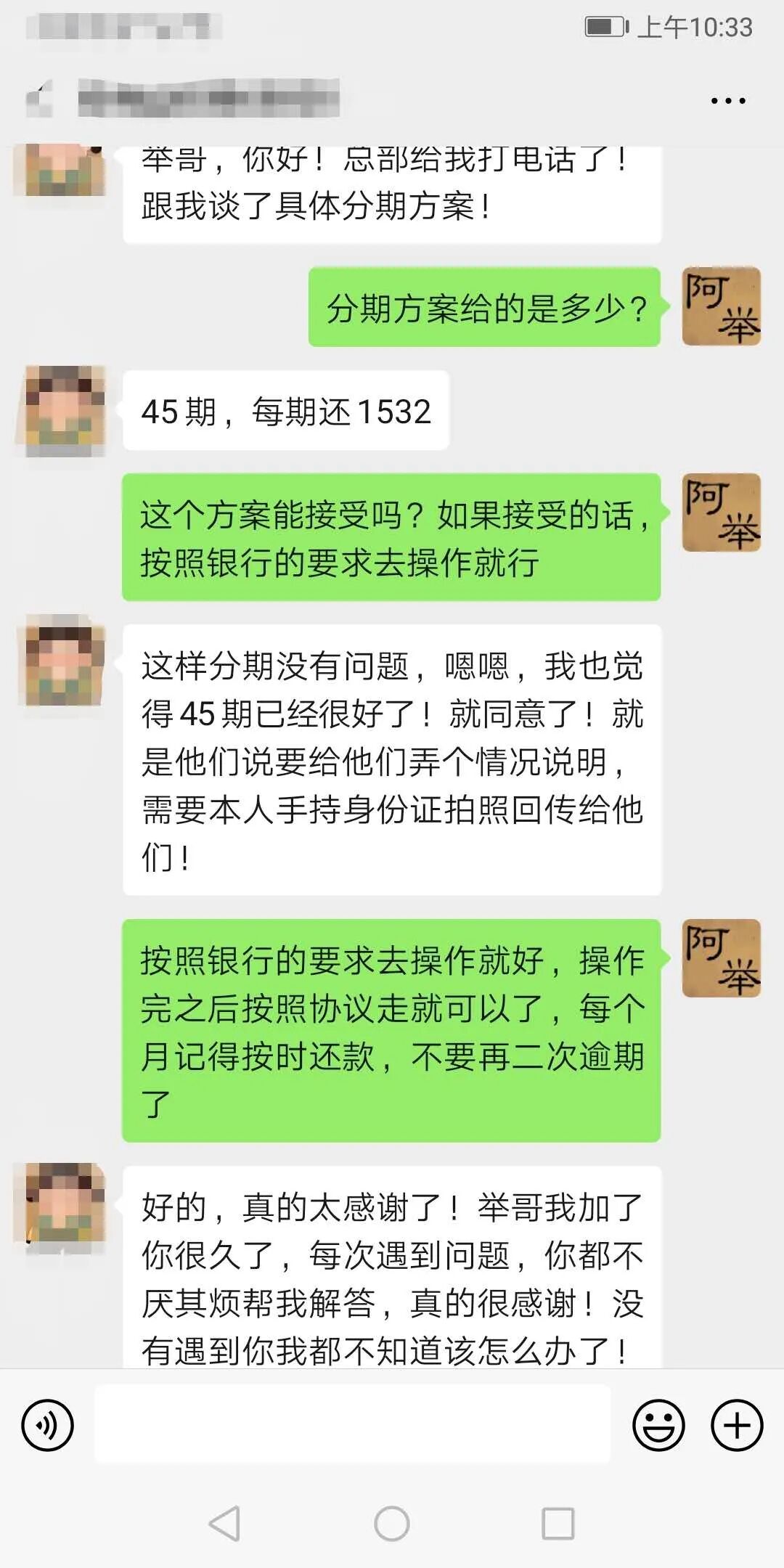 问题1 网友问: 信用卡逾期,当催收说要上门调查怎么办啊? 阿举答: 不同的回答得到的结果也大不相同! 一:我的欠款是用于投资做生意,正常消费的,并没有用于违法的地方。并且我的家人都知道我负债的事情,如果你们要上门也可以,请你们告诉我准确的时间,我好抽空回家! 二:我现在在上班,没有时间回答你这个问题,下次再联系。过了两天再次联系该逾期持卡人时,你们是谁,我不认识你们,请你们不要再骚扰我了! 三:请你们给我一点点时间,我不是不想还款,我家人身体不好,我还有小孩,你们如果上门催收,我的家人一定会责怪我的,并且会颜面尽失,那后面我就更没办法还钱了! 对于以上三种不同的回答,第一种回答被上门的机率几乎为零!第二种回答被上门的几率为50%左右!第三种回答被上门的几率几乎为99%! 你看懂了吗?你越是害怕什么,催收越是做什么! 面对催收不卑不亢,调整好心态,合理规划,及时止损,尽快协商!停息停催! 每个不同的银行对于不同逾期阶段给予的政策都是不同的。如果需要解答,首先描述好自己欠多少?欠的是哪个行,逾期多久。 但是那些问我怎么样不需要还的,呆账是否需要还的。被代偿是否需要还的免开尊口。 我解答的意义在于帮助那些陷入困境的人, 我始终站在欠债还钱天经地义的立场。 问题2 网友问: 银行到底可以不可以协商分期还款,我打电话给银行他们就说没有这个业务,我说别人就可以协商的了的,然后他们说给你备注,过几天接到电话是催收,说是不能给分期,怎么才能分期成功? 阿举答: 很多持卡人逾期后无偿还能力,逾期以后给银行打电话协商停息挂账,基本上都是被告知我们银行没有这项业务,要不就是说后期会有这个工作人员和你联系,那么结果等来的还是第三方催收继续催收骚扰你让你赶快还钱! 为什么会失败?原因有四点: 第一、大家都知道银行是盈利机构,你随便一个电话过去就想成功办理停息挂帐,已经严重的影响到了银行利益,他们不是慈善机构,如果逾期后打个电话给分期然后分期后不要你利息还让你长期还,银行不愿意 第二、就是找对人很重要,比如说像你找催收协商,他是没有权限帮你去做减免和分期的并且谈分期催收是没有提成的,所以不用跟催收谈分期成功率很涉 第三、一定要保持你的还款意愿,还有你的还款态度,逾期后不要失联或者一分钱都不还,那到协商的时候就不好协商了 第四、如果你真的想要跟银行协商分期还款的话一定要懂得具体的话术和协商流程以及分析相关的法律依据 招商逾期委托我们协商成功案例 我的招商银行的情况是逾期快两个月,本金加逾期费用7w,逾期一个月以后银行的客服打电话说最低还款1.6w,我表示没钱还,讲了一大堆后果,基本每天打个电话发个短信,后来居然打给我爸妈了,真的压力太大了,家里人也帮不上忙,所以找到阿举,想让尽快的帮忙协商 阿举问完情况后,跟我说了详细的相关事情,我表示都可以接受,然后开始协商,让我等银行的电话,差不多四天左右接到银用地的电话,问了我一下情况,银行那边跟我说可以分36期,我表示比较困难,想多分期,然后让提供了一下我的征信报告和收入证明,下午就来电话给了分期方案,分了42期,感谢,心里轻松了很多 最后打个广告,逾期一次性偿还不了跟银行协商个性化分期还款是最好的解决方法,如果自己协商不了,可以找我们协助协商,专业事交给专业的人处理! 在你犹豫不决的时候其他人选择了债务重组跟银行协商个性化分期还款,在你还在纠结的时候选择的人己经按照 协商的方案还款,而你又多了几期利息和违约金,仍然还是面对每天催收的骚扰和恐吓,同时也多了银行对你的起诉风险。在能协商的时候就赶快协商吧!千万别拖到被起诉才着急想解决的方法,这个时候就完全被动了! 很多人打银行电话去申请分期还款,但是银行前期基本上都会说没有这个政策,这基本上是业内默认的行规!如果每个人打过去电话银行都同意个性化分期还款,那世界就和平了,银行相关催收就没有了!我们要做的是找对方法和渠道让第三方介入来协商与相对应银行的协商分期,然后坐等银行主动打电话给我们来协商,而不是愣头青一样直接找银行协商,想协商个性化分期还款的可以关注我们私聊,给你提供相关协商方法让银行主动来找你协商分期! 总之如果在协商的道路上你们有不懂的话可以咨询我们:专业事交给专业的人来办! 由于本人在互联网金融干了有七八年,从去年初就开始研究逾期后的停息挂账政策为近两万负债人提供了相关解答,有着丰富的相关协商经验,所以负债人遇到的大部分问题,基本上都能解答给出相关经验。 如有问题可以加我们咨询就好! 了解更多知识,请关注卡神吧,为您提供信用卡、贷款、理财、保险等资讯及交流! 特别声明1、该文观点仅代表作者本人,卡神吧系信息发布平台,卡神吧仅提供信息存储空间服务。 2、您若发现有侵略您著作权行为,请及时告知,我们工作人员将在第一时间删除侵权作品、停止继续传播。 3、如果你喜欢这篇文章,请帮助我们转发它分享给你身边的好友。 |