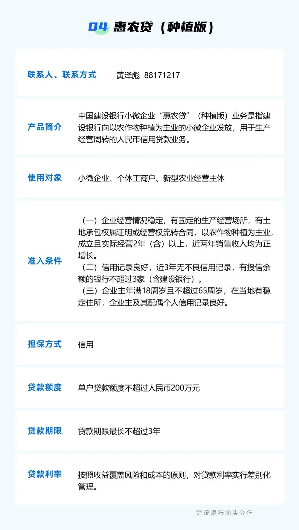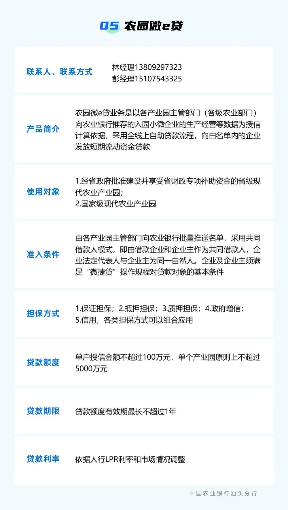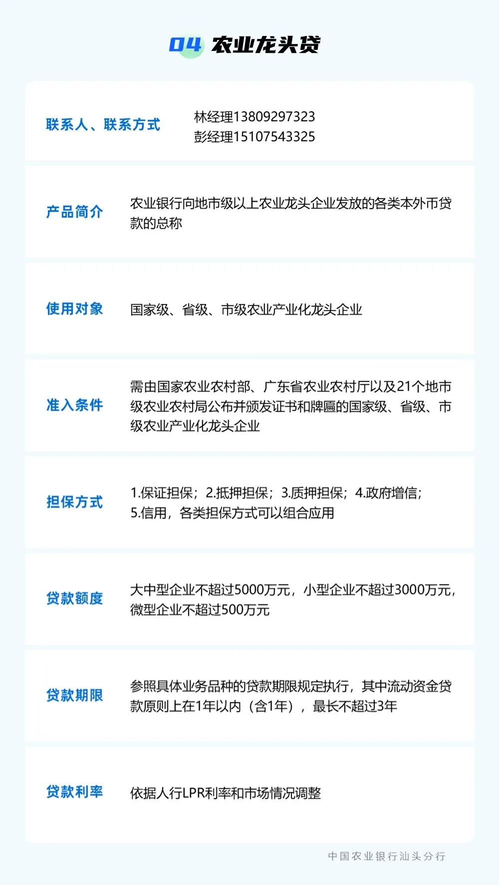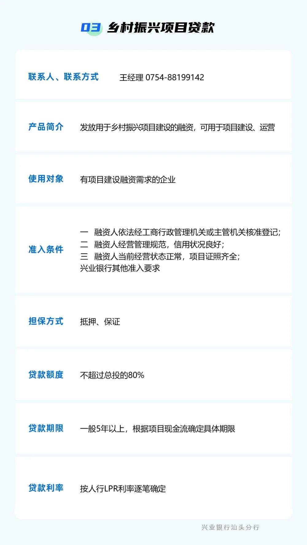 为贯彻落实中央一号文件精神,强化乡村振兴金融服务,提升农村金融服务的可获得性和便利性,按照汕头市委实施乡村振兴战略领导小组的统一部署,汕头市金融工作局组织辖内银行业金融机构梳理汇编乡村振兴信贷产品信息,现予发布。各市场主体如有融资需求,可点击下方银行名称获取信贷产品信息和联系方式,向银行机构直接咨询了解。需深入了解请联系市金融局(0754)88526801。 点击查看 ? 特别声明1、该文观点仅代表作者本人,卡神吧系信息发布平台,卡神吧仅提供信息存储空间服务。 2、您若发现有侵略您著作权行为,请及时告知,我们工作人员将在第一时间删除侵权作品、停止继续传播。 3、如果你喜欢这篇文章,请帮助我们转发它分享给你身边的好友。 |