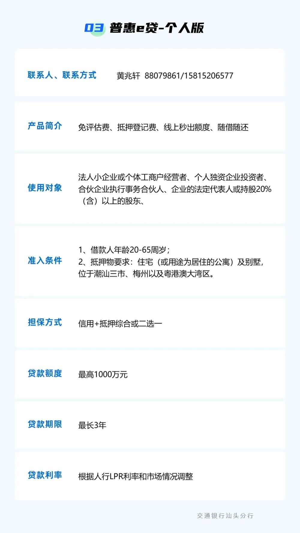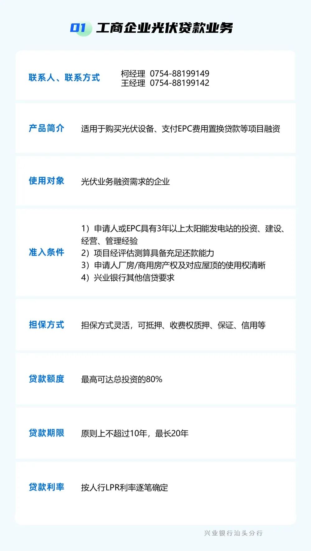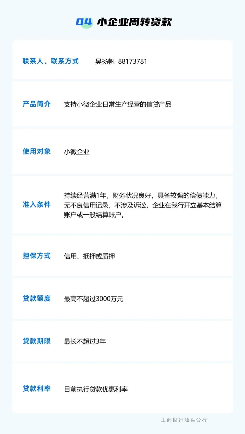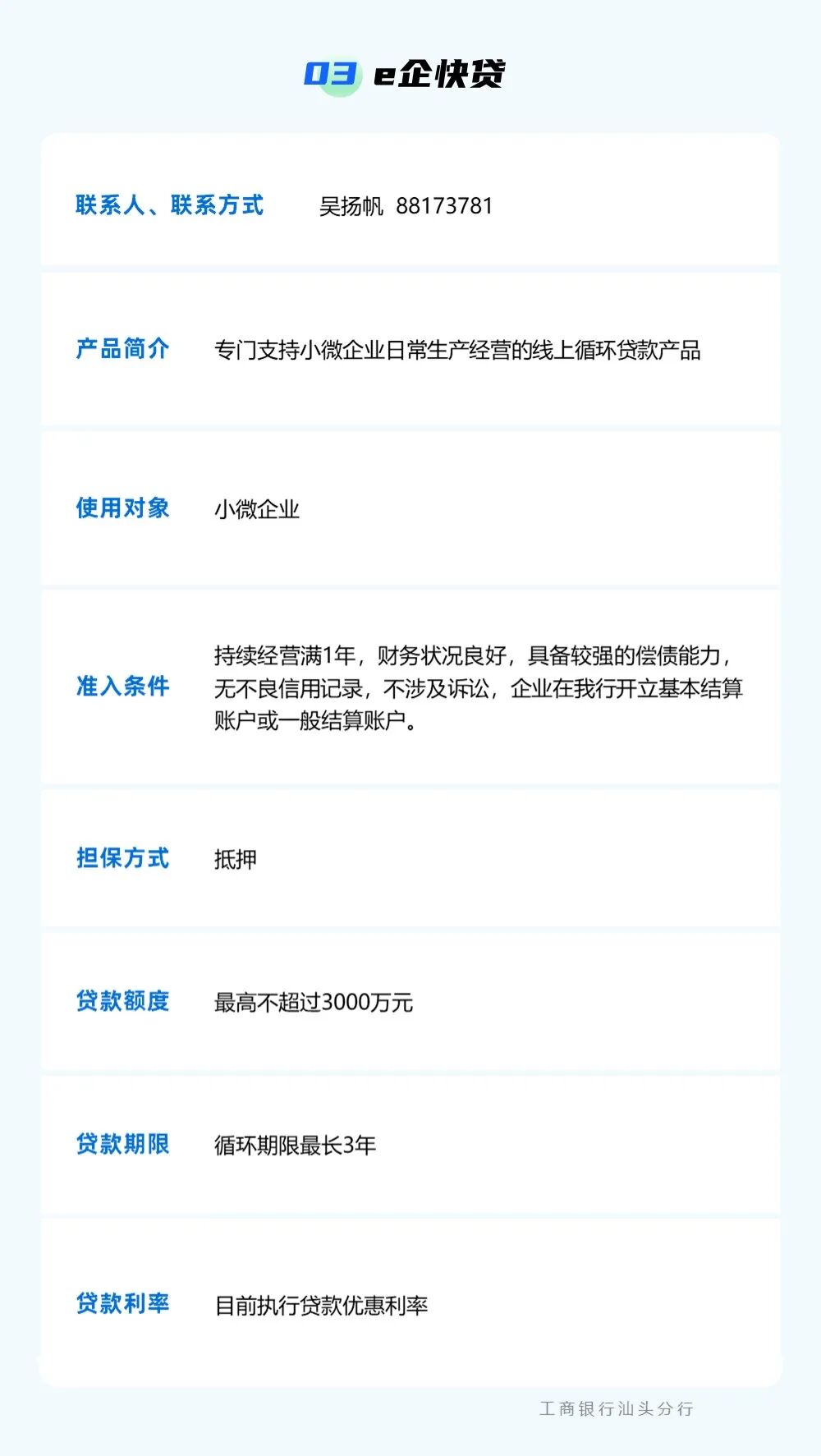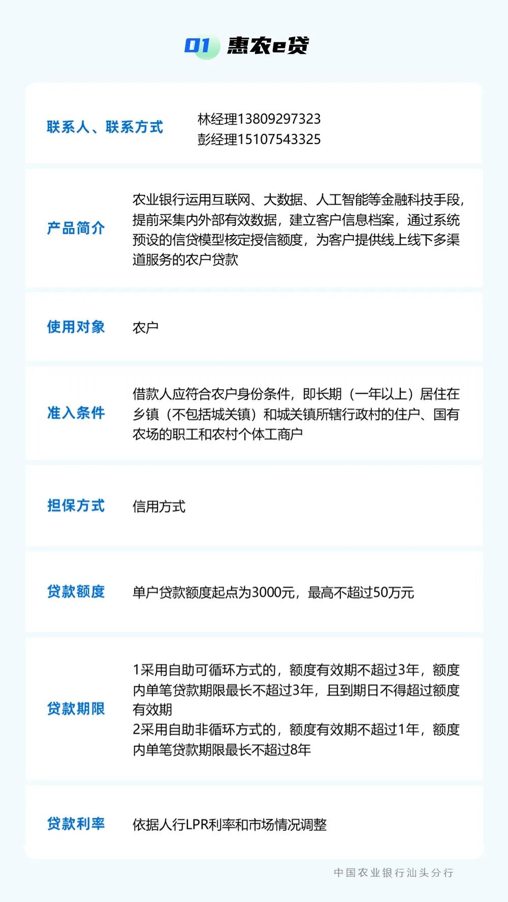 为贯彻落实中央一号文件精神,强化乡村振兴金融服务,提升农村金融服务的可获得性和便利性,按照汕头市委实施乡村振兴战略领导小组的统一部署,汕头市金融工作局组织辖内银行业金融机构梳理汇编乡村振兴信贷产品信息,现予发布。各市场主体如有融资需求,可点击下方银行名称获取信贷产品信息和联系方式,向银行机构直接咨询了解。需深入了解请联系市金融局(0754)88526801。 点击查看 ? 特别声明1、该文观点仅代表作者本人,卡神吧系信息发布平台,卡神吧仅提供信息存储空间服务。 2、您若发现有侵略您著作权行为,请及时告知,我们工作人员将在第一时间删除侵权作品、停止继续传播。 3、如果你喜欢这篇文章,请帮助我们转发它分享给你身边的好友。 |